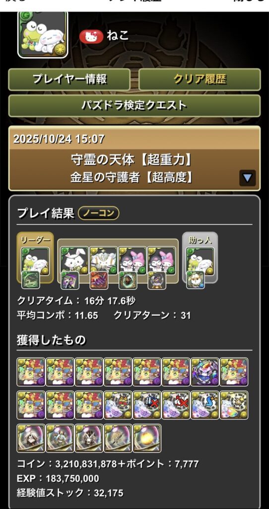 最初はサンリオキャラで固めた編成にしていましたが、あまりにもキャラパワーが不足していたため、プライドを捨てて鬼滅に頼ることで完成に至りました。