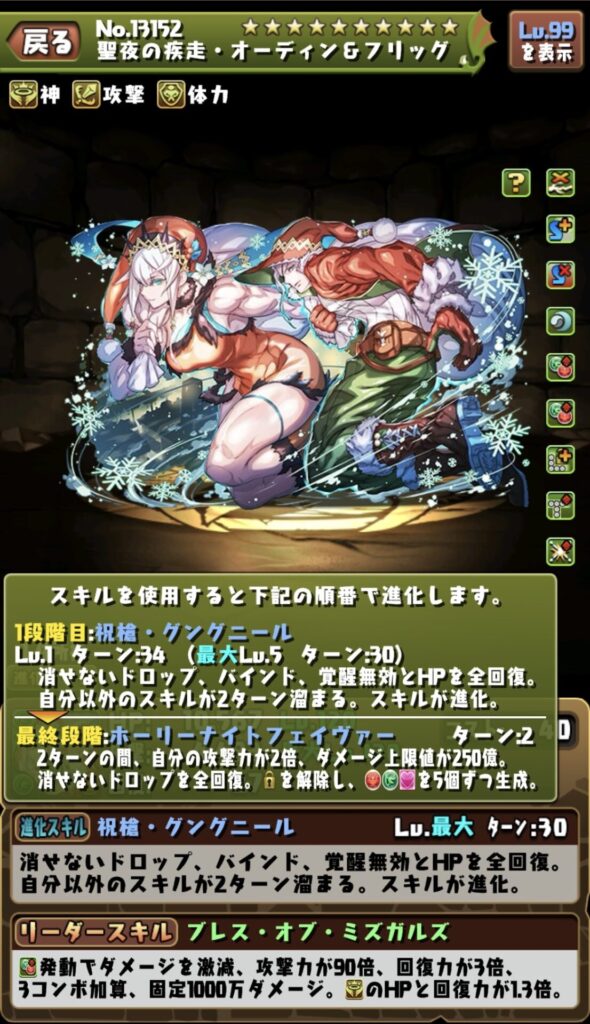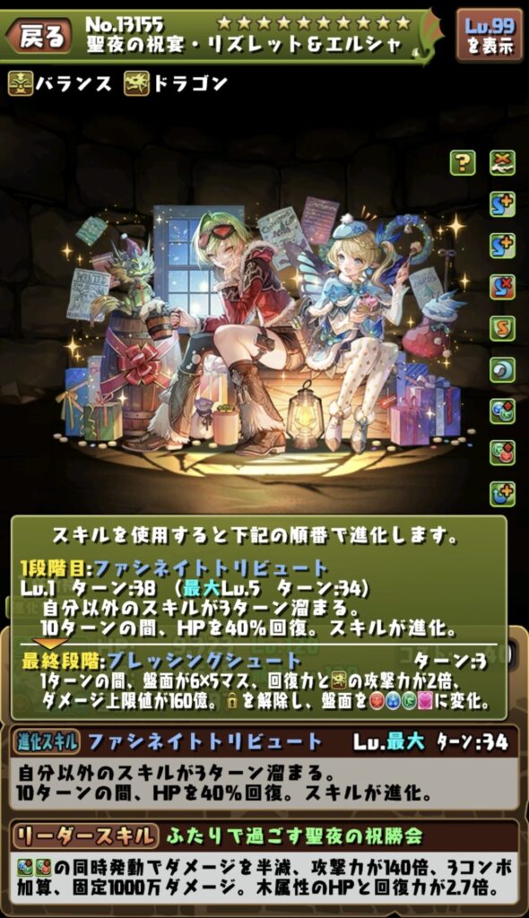 属性吸収+無効貫通+上限解放というスキル内容は完璧だが、上限解放の継続ターンと数値に難あり。