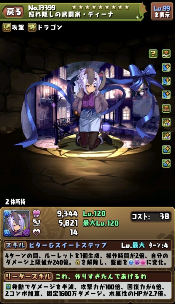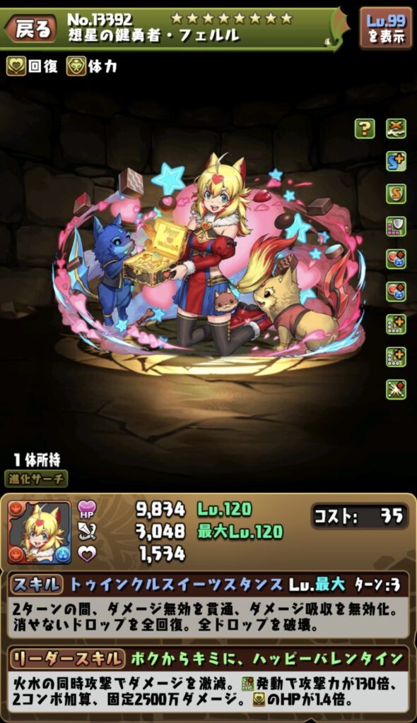 とはいえ本体も武器もスキルの唯一性はあり、面白いキャラではあるため、モンポがかつかつでなければ1枚は取っておきたい(ねこまるは2枚購入)。
